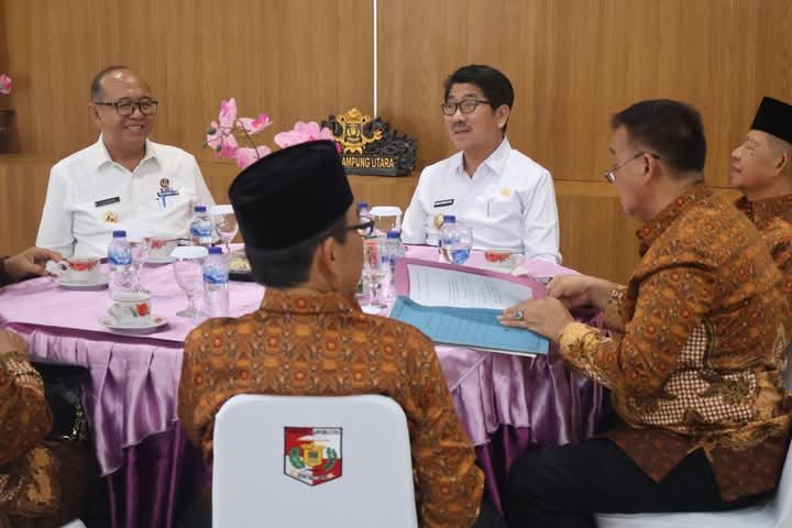 Lampung Utara – Rabu, 23 April 2025Bupati Lampung Utara, Dr. Ir. Hamartoni Ahadis, M.Si., menerima audiensi dari jajaran pengurus Persatuan Wredatama Republik Indonesia (PWRI) Kabupaten Lampung Utara di Rumah Jabatan Bupati, Rabu (23/4/2025).