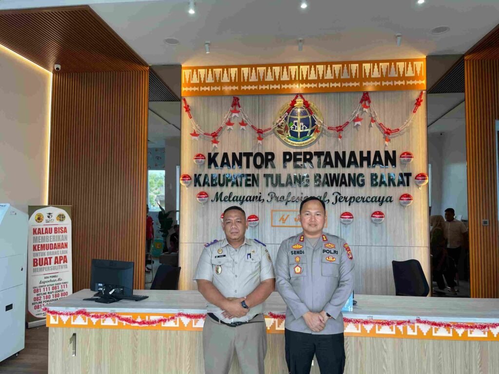 Tulang Bawang Barat,( www.infopublik.news), – Kapolres Tulang Bawang Barat AKBP Sendi Antoni, SIK, MIK, mendatangi Kantor Pertanahan Kabupaten Tubaba yang bertempat di Kantor Pertanahan Tubaba Tiyuh Pulung Kencana Kec. Tulang Bawang Tengah Kab. Tulang Bawang Barat. Selasa (26/08/2025)
